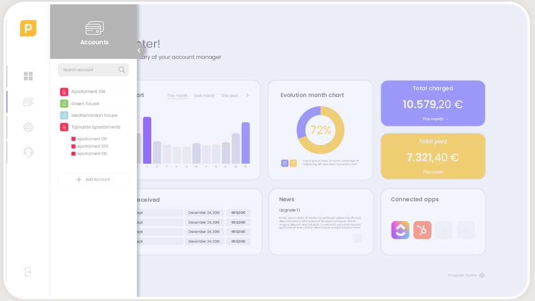 In the project of this payment system especially oriented to holiday rentals and tourist services, we also developed the corporate identity and the related graphic language.