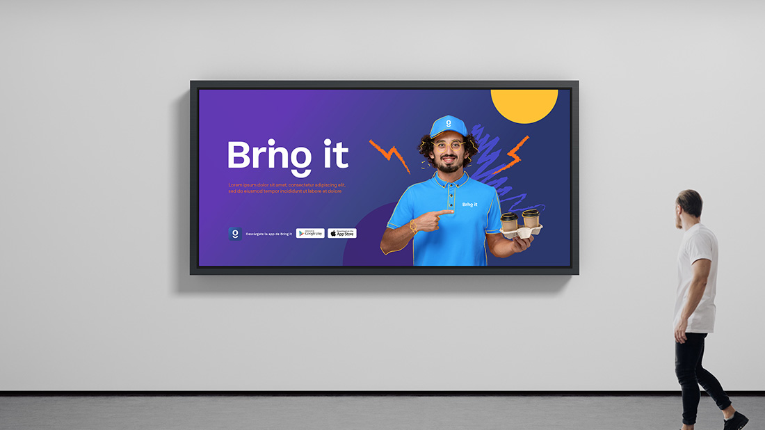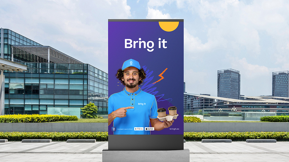 El branding de Bringit ha sido desarrollado para competir con las grandes marcas del sector delivery. Una marca potente, actual y cuyo discurso se vincula con el público objetivo de las Islas Canarias a través de las imágenes y el lenguaje.