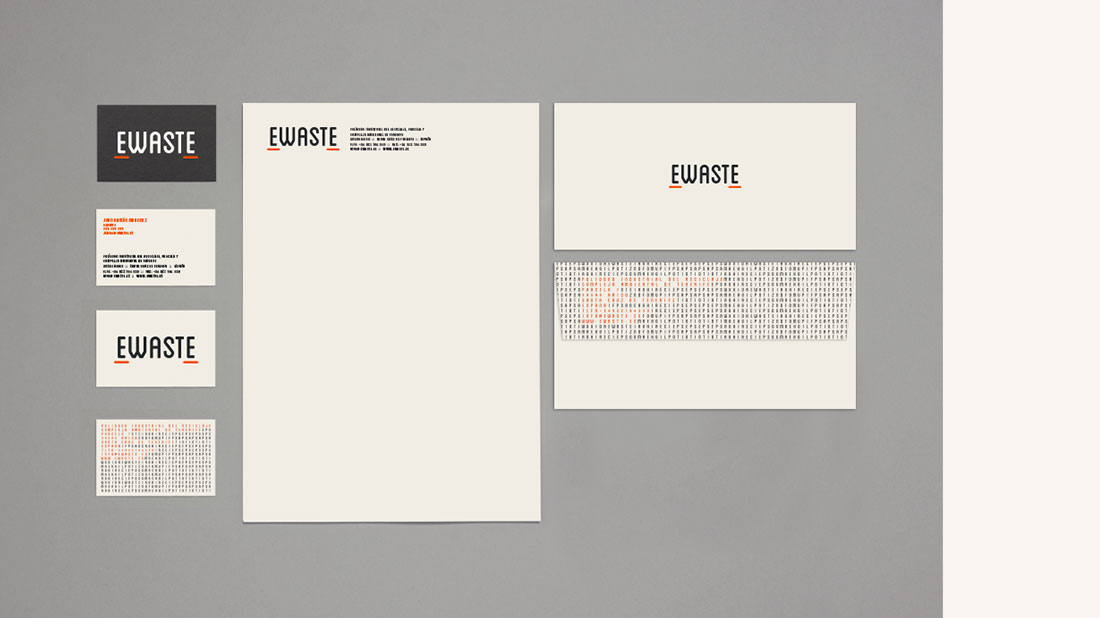 Una marca cíclica como sus servicios. Ewaste trabaja en la correcta gestión de residuos de aparatos electrónicos, y eléctricos de cualquier formato. Una gestión circular que se representa con un pequeño guiño en la E inicial y la final.