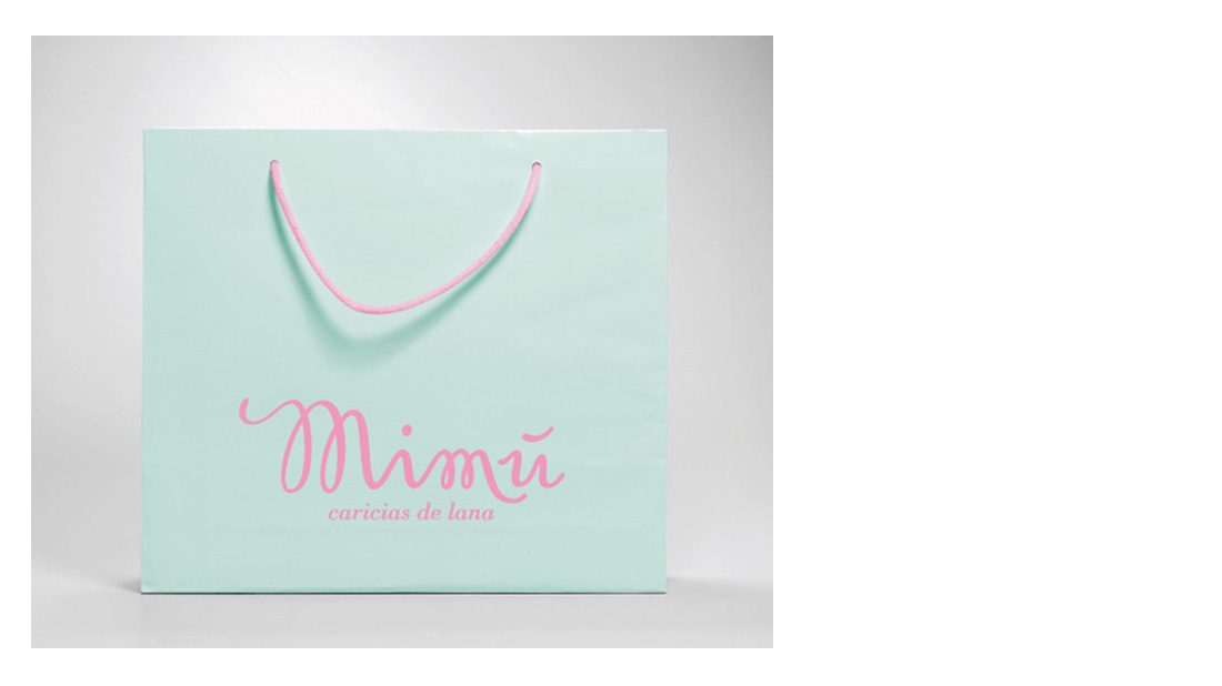 Colores pasteles, letras de formas armoniosas y un entorno que recuerda el carácter artesanal de su producción como lenguaje gráfico para un resultado visual que refuerza a su claim, caricias de lana.
